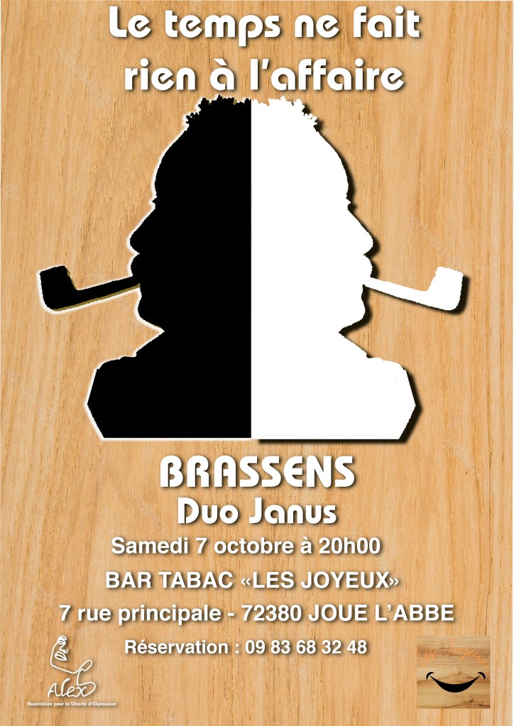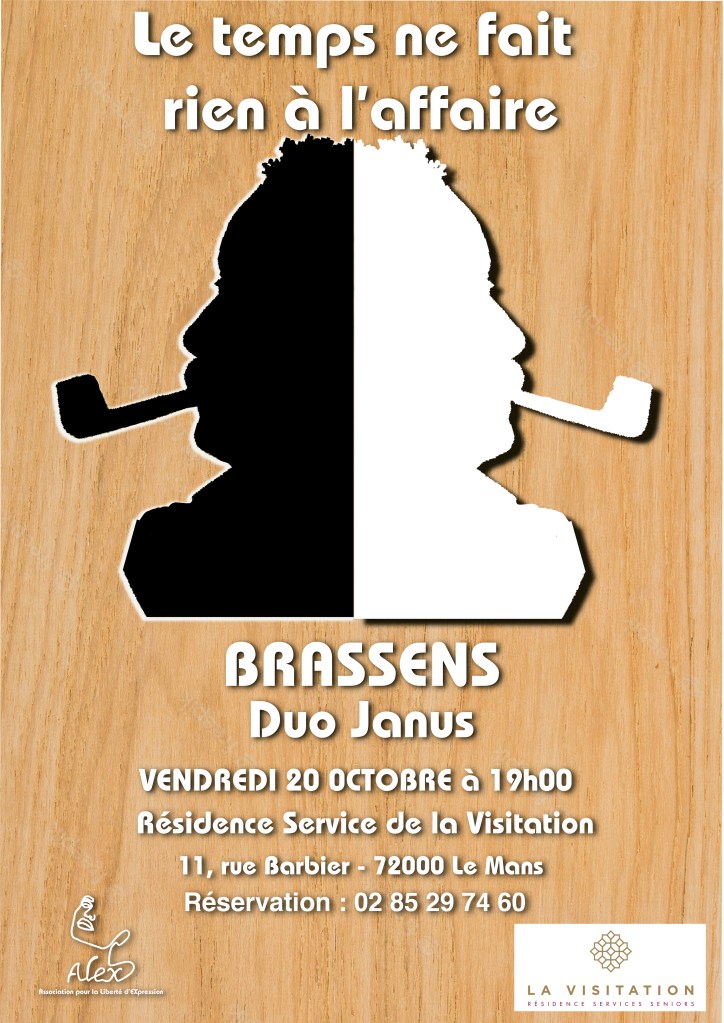Le mois d’octobre est « le mois Brassens » ( Il est né le 22 octobre et nous a quitté le 29 octobre) Pour le fêter deux formules de concert seront à l’honneur. Une première formule en duo sous le titre « DUO JANUS ».