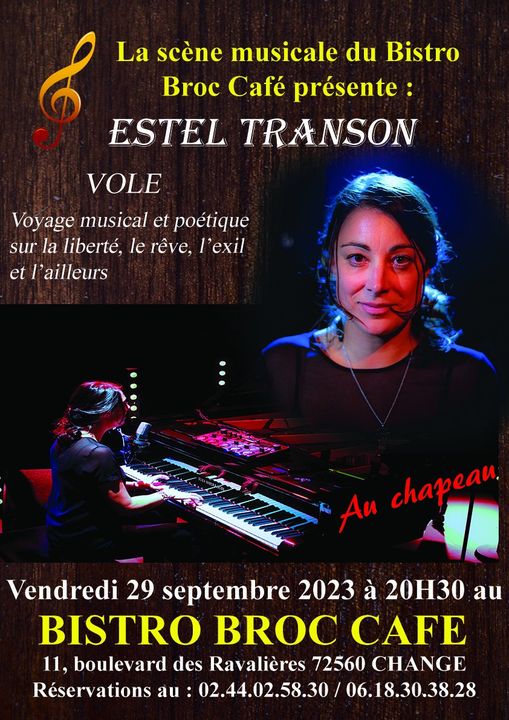 Le 29 septembre Estel Transon sera au Broc Café et le 6 octobre elle sera au Loft rue des Acacias au Mans