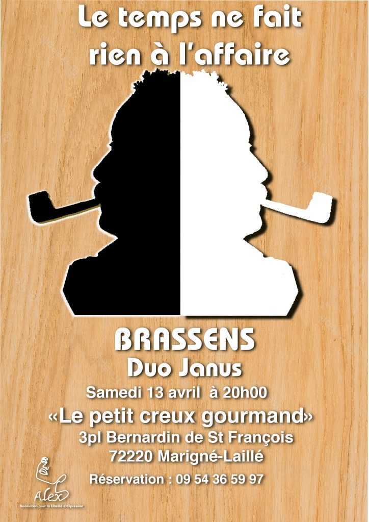 C’est avec toujours le même plaisir que nous jouons ce spectacle autour des chansons de Brassens. Chansons qui touchent curieusement toutes les générations confondues. On vous attend le 13 avril pour une très belle soirée. Petit détail pratique : Pensez à réservez vos tables et vos « Planches apéro » au 09 54 36 59 97