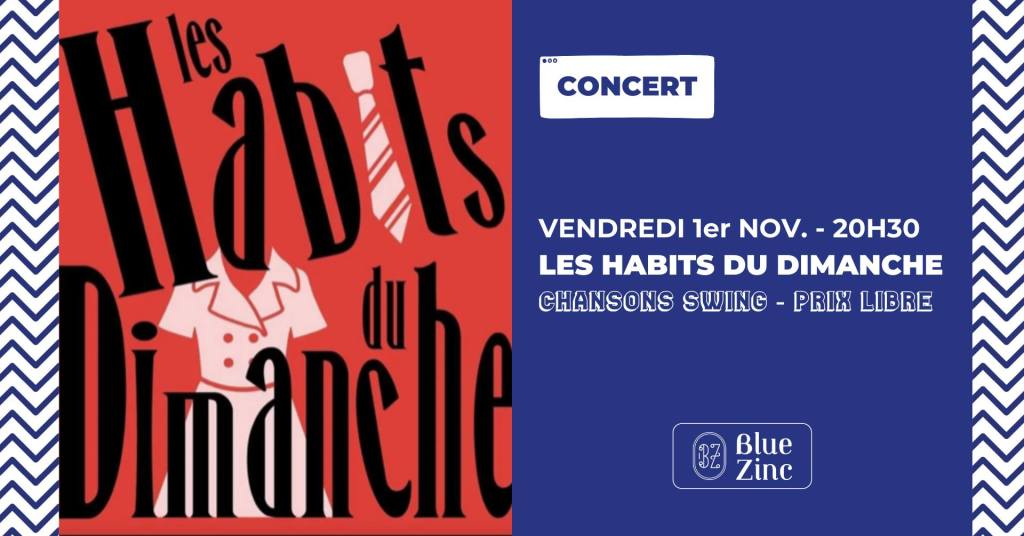 Grand moment en perspective avec ce concert des Habits du dimanche dans une formule inédite. Vous voulez en savoir plus? Rendez vous le 1er novembre pour un joli concert de swing à la française!