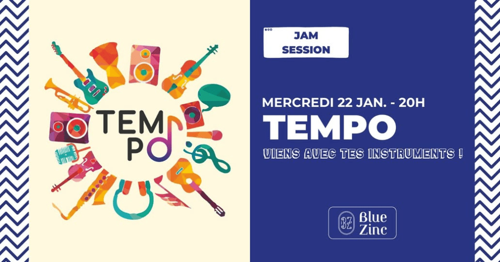Le 22 janvier c’est une Jam session au blue Zinc avec l’association Tempo. Que vous soyez musicien participant ou spectateur vous êtes attendus avec chaleur.