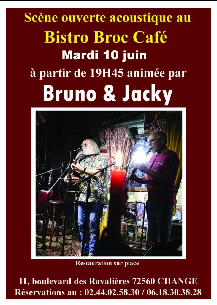 Comme chaque mois, le Broc café organise grâce à Bruno et Jacky une scène ouverte. Avis au amateurs, inscriptions sur place le jour même
