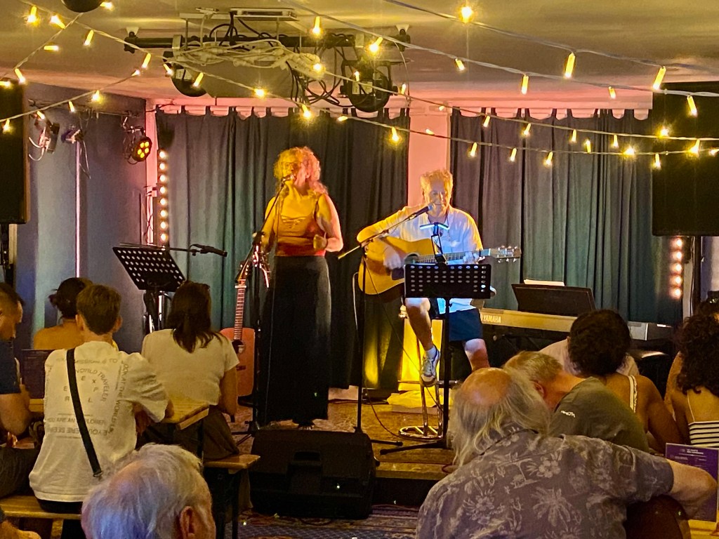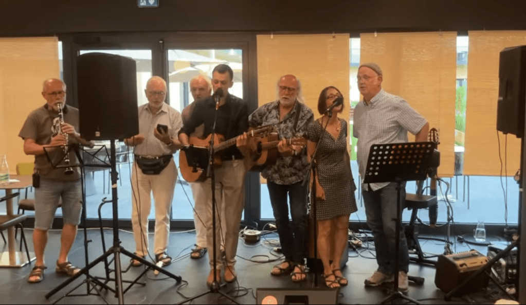 Puis un Apéro-Chansons le 25 juin au « Blue Zinc » avec de nouveaux et de nouvelles venus mais également un nombre record de participantes et participants ( 24 musiciens, chanteuses et chanteurs) sur le thème de la mer et des vacances: