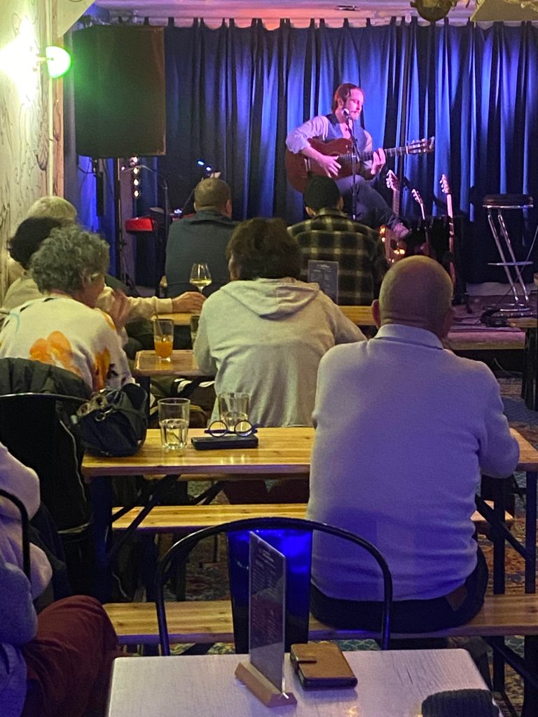 Nous avons testé ce mois-ci la nouvelle formule bimestrielle des « Apero-chansons »avec 5 artistes ou groupes interprétant 6 chansons. Pour ce qui est de la participation, de l’ambiance et du public c’est une réussite, merci à tous.
